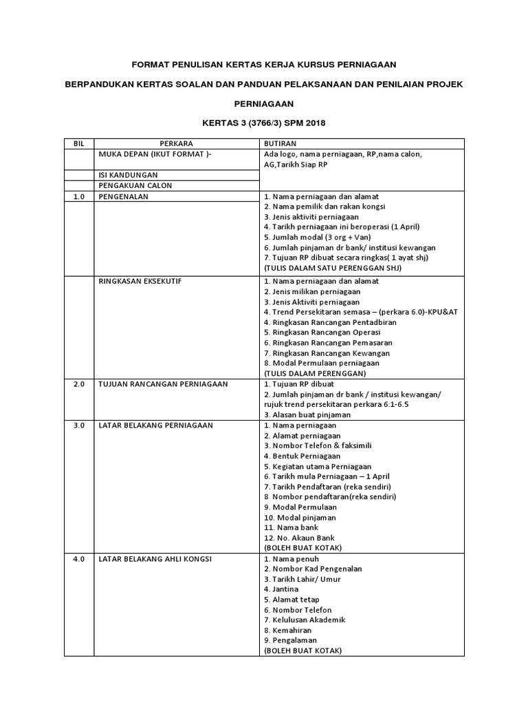 Format Penulisan Kerja Kursus Perniagaan Pdf