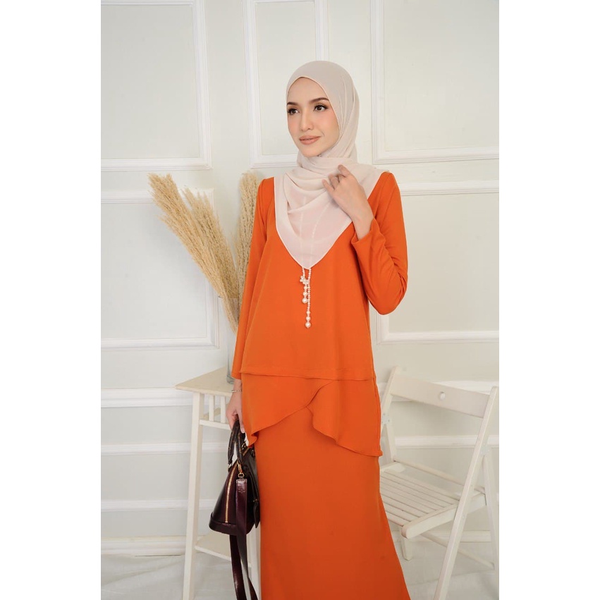 Baju Kurung Warna Jingga Tua
